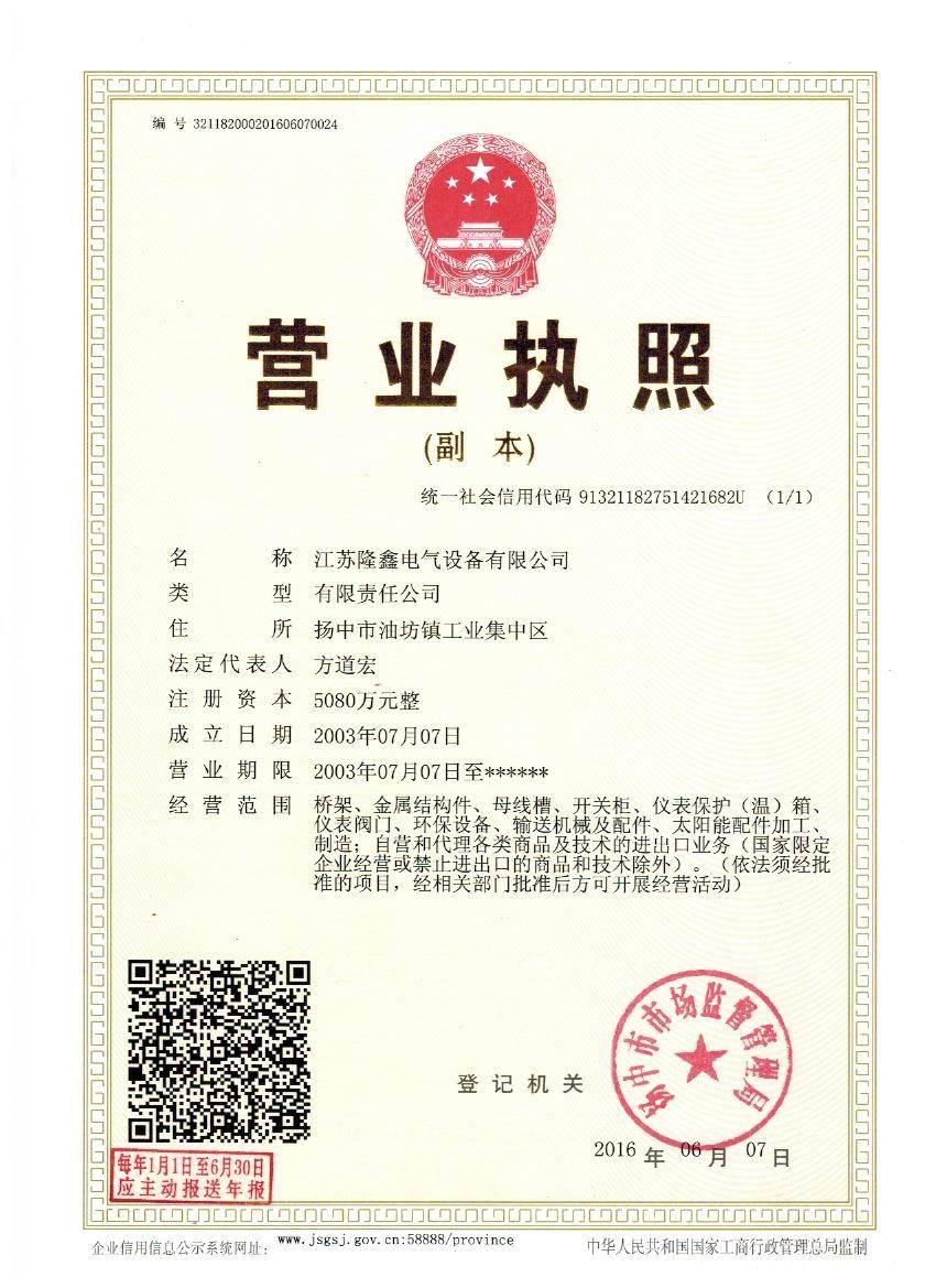 江蘇隆鑫電氣設備有限公司(原揚中市隆鑫電器設備有限公司)位于風景秀麗的江南古城 ---- 鎮江東部揚子江畔,水陸交通便利。 本公司是中石化網絡成員企業,是揚中橋架企業,工業管道閥門、儀表管配件、母線槽、匯線橋架、玻璃鋼制品的專業生產廠家。 我公司以經營以管理為保證、以科技進步為動力,使產品的市場占有率不斷提高,公司正持續、穩步、健康地向前發展,秉循“服務用戶、奉獻社會”的經營觀念,本公司生產的儀表管件及閥門系列產品、母線槽、電纜橋架幾乎覆蓋全國31個省、市、自治區的化工、冶金、交通、輕紡、建筑、港口...